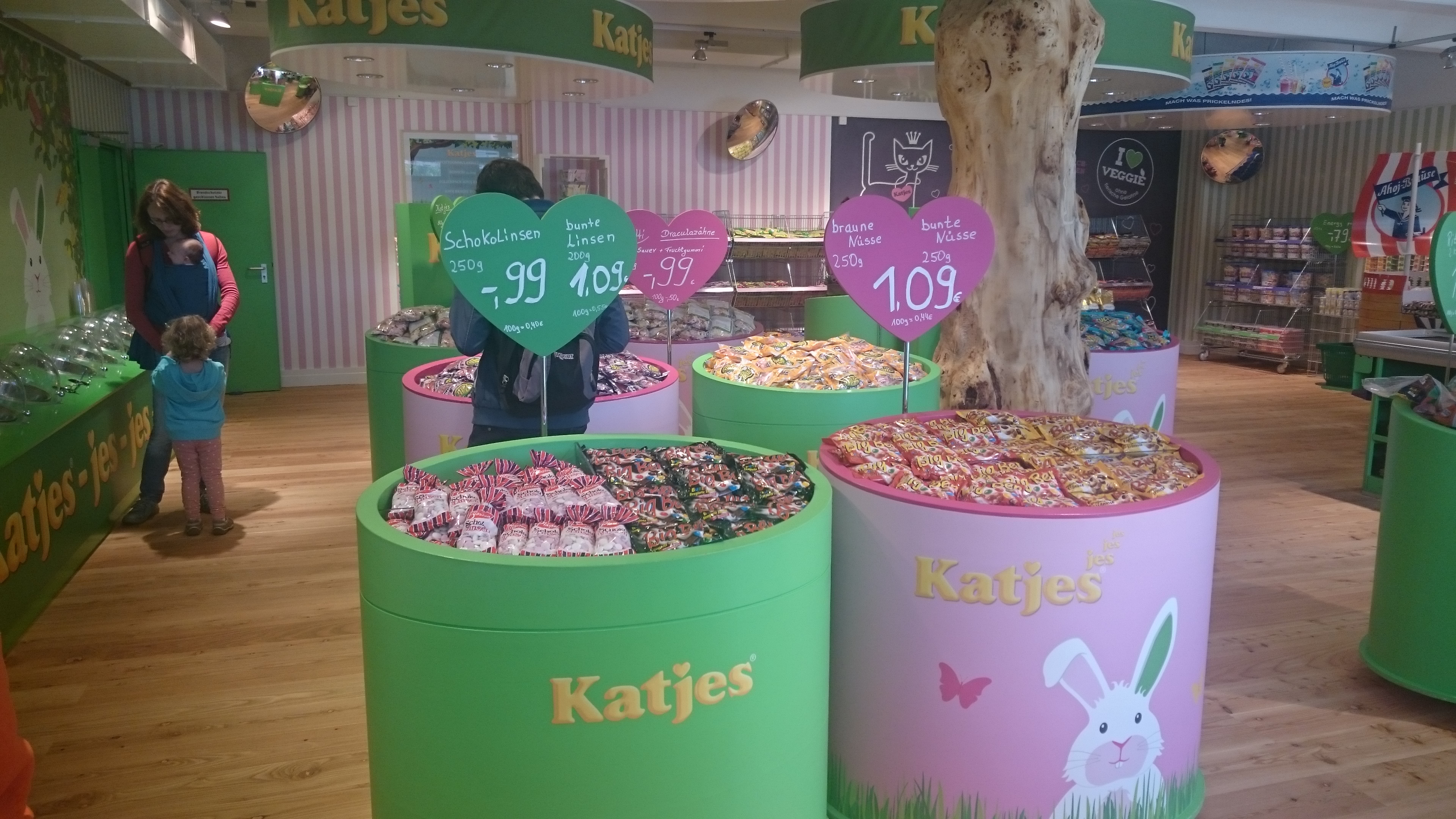 a dokładniej sklepów firmowych, które zazwyczaj przy takich fabrykach funkcjonują. Nie jesteśmy powiedzieć skąd to się wzięło, ale w każdym mieście, w którym jesteśmy trochę dłużej wynajdujemy taki sklep i bez większych wyrzutów sumienia przepuszczamy tam zbyt dużo pieniędzy. W przypadku Warszawy takim miejscem była oczywiście fabryka Wedla na Pradze, w Hanowerze byliśmy stałymi gośćmi w Bahlsen, w Bonn naturalnie stałym punktem odwiedzin był Haribo. Tak więc po przeprowadzce do Berlina punktem honoru było wynalezienie naszego nowego ulubionego sklepu. No i udało się! Otóż w Poczdamie ma swoją fabrykę firma Katjes produkująca żelki (chyba najbardziej powszechne są zajączki z różnokolorowymi uszami).
