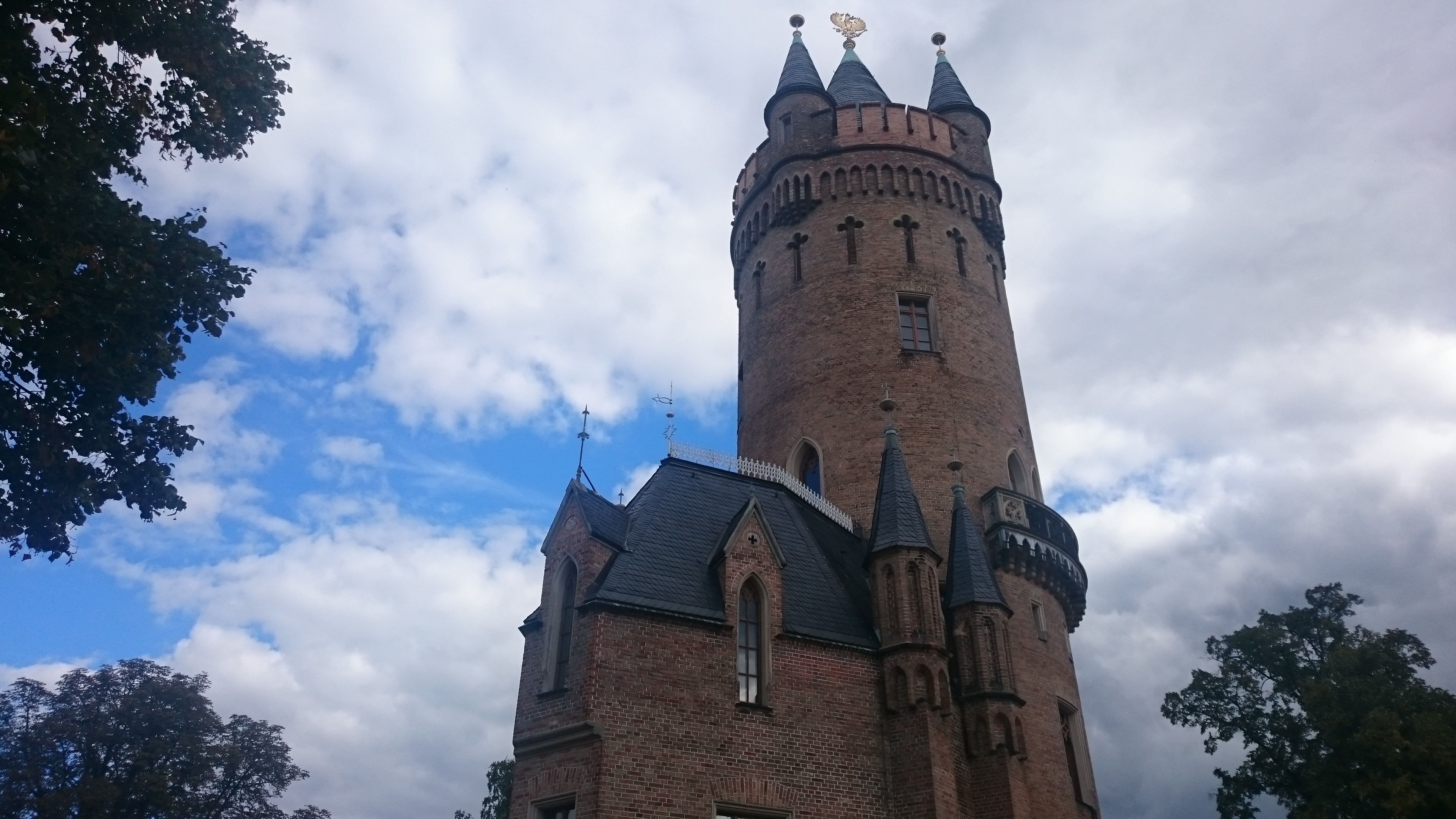 Ponieważ pogoda była bardzo ładna postanowiliśmy zostać w Babelsberg i trochę pozwiedzać. Ta dzielnica Poczdamu jest szczególnie warta odwiedzenia, nie tylko ze względu na słynny park filmowy, ale przede wszystkim piękną zabudowę i ogromny park z imponującym zamkiem. Po wyjściu z fabryki udaliśmy się więc na spacer uliczkami Poczdamu, minęliśmy park filmowy, ratusz dzielnicy Babelsberg i udaliśmy się do parku. Mimo że zamek jest jeszcze w trakcie remontu (zakończenie planowane na grudzień 2015) i tak warty jest odwiedzenia. Budowlą, której również nie można ominąć jest Flatowturm, z której rozciąga się przepiękny widok na Poczdam.