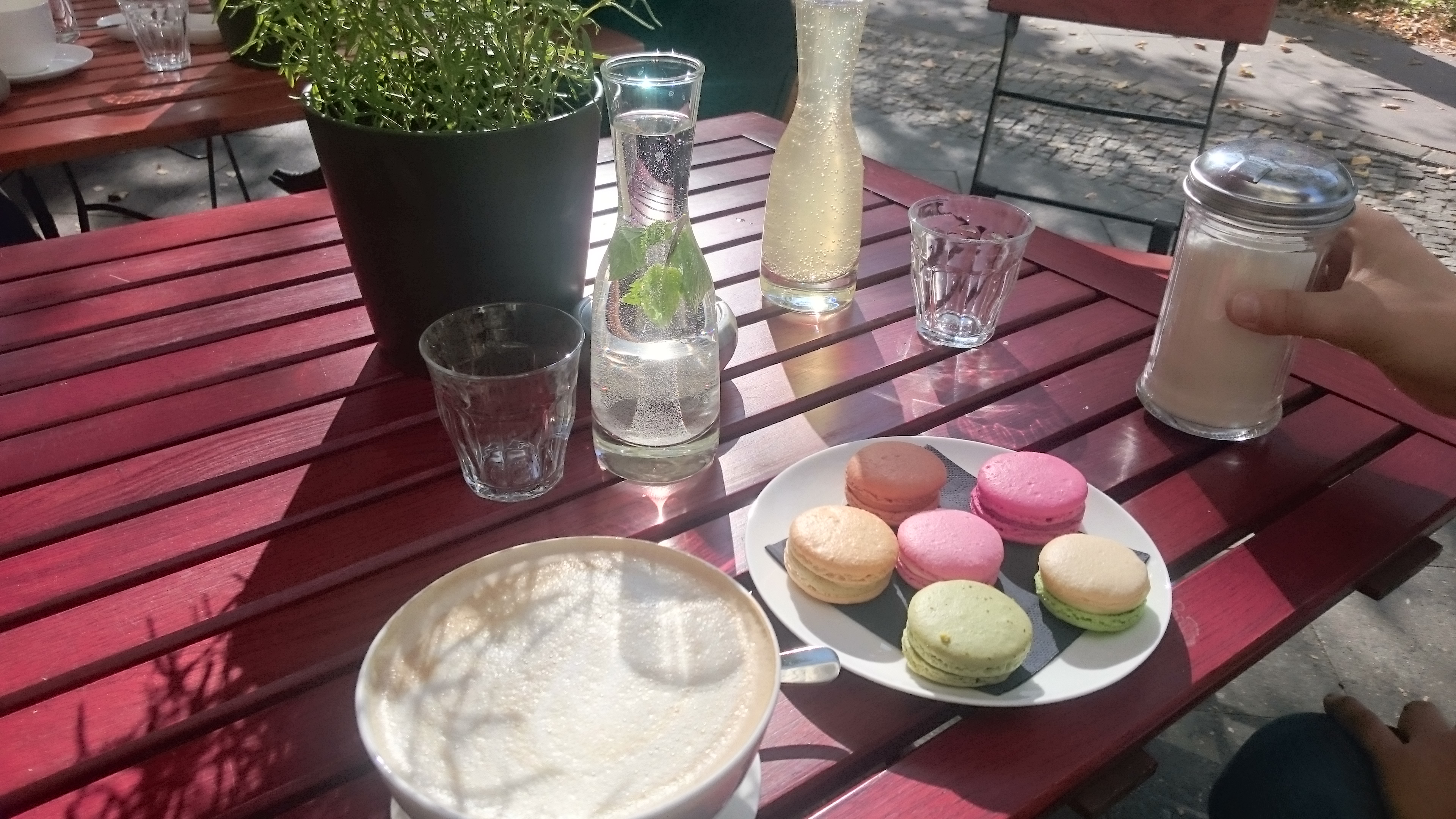 i jak się okazało Wedding ma naprawdę wiele do zaoferowania. W tym tygodniu za cel wybraliśmy park Humboldthain po drodze zaglądając do kilku świetnych knajpek. Wycieczkę zaczęliśmy w Mitte – ze stacji Friedrichstrasse wyruszyliśmy tramwajem M1 do niewielkiego przy Rosenthaler Platz. Atrakcją parku jest niewielki ogród różany, niestety ze względu na porę roku róż niewiele już zostało 😉 Po krótkim spacerze udaliśmy się do Du Bonheur – kawiarni, która w ofercie ma przepyszne makaroniki w kilkunastu smakach. My zdecydowaliśmy się między innymi na waniliowe, pistacjowe i malinowe – cudowny smak! Kawiarnia niestety do najtańszych nie należy, ale zdecydowanie jest warta grzechu.